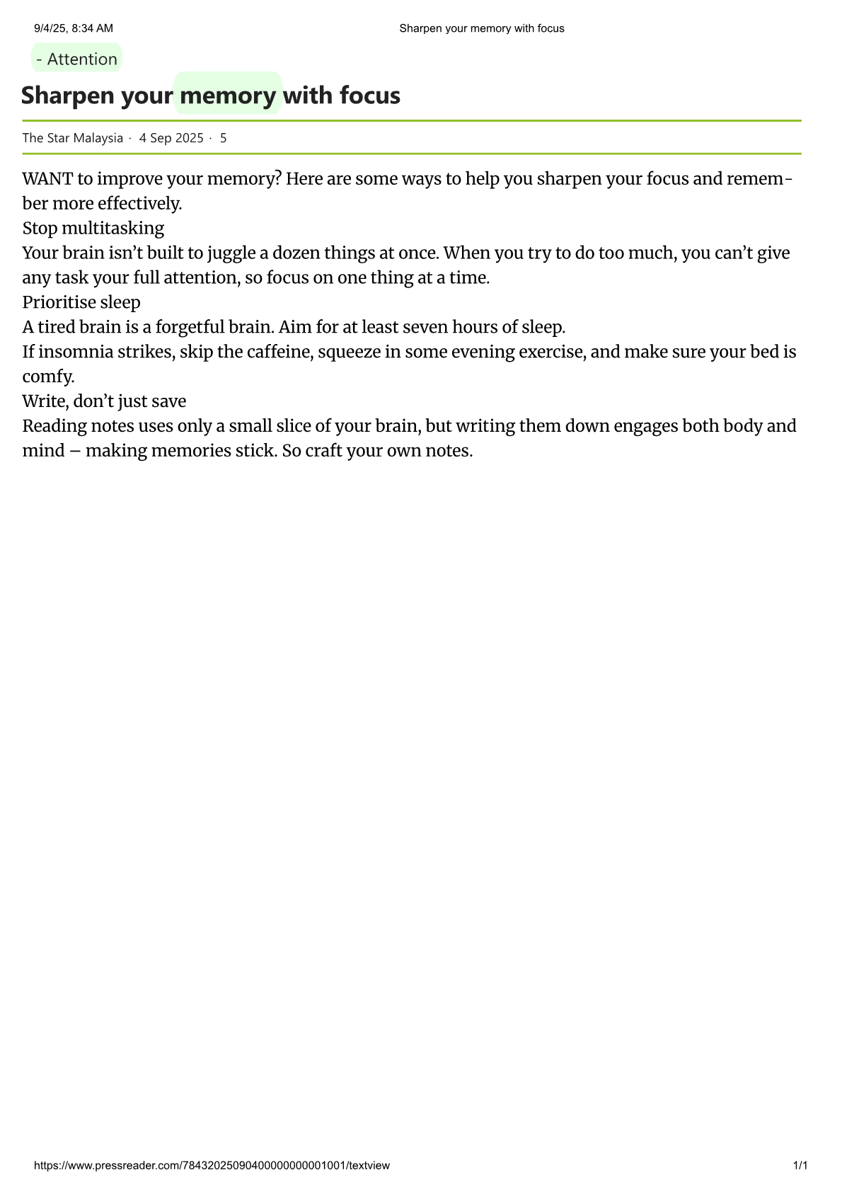 Sharpen your memory with focus